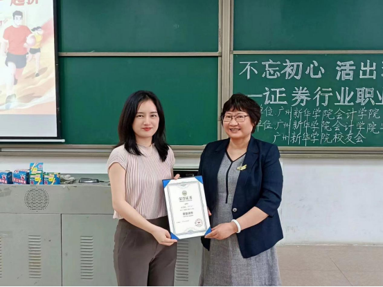 最后,会计学院学生党总支书记李安兰为优秀校友邱思敏颁发广州新华学院学子讲坛荣誉讲师证书。至此,本次新华学子讲坛圆满结束。经统计,本次讲坛的153位参会同学中有83位应届毕业生向招商证券成功投递简历。