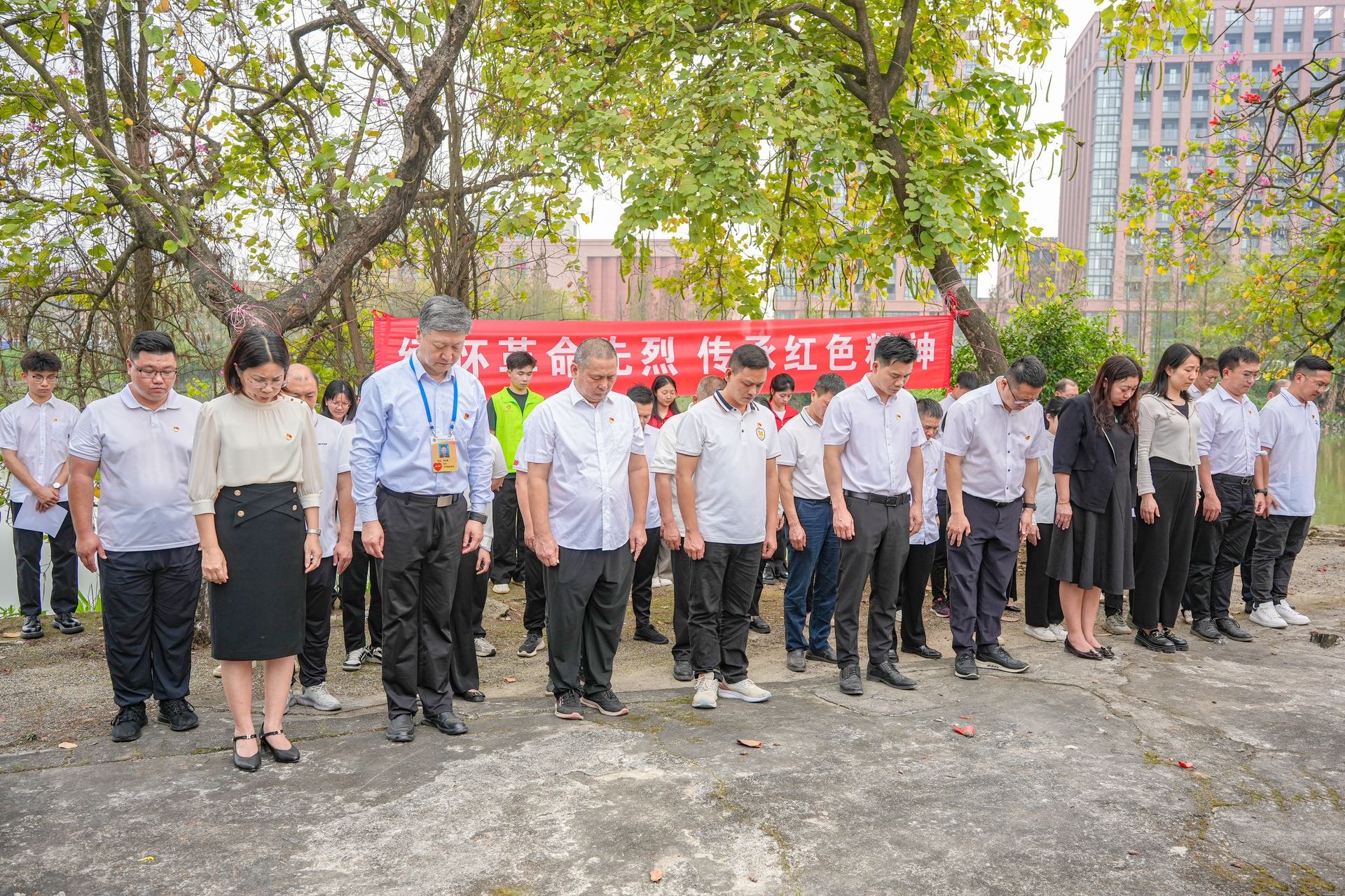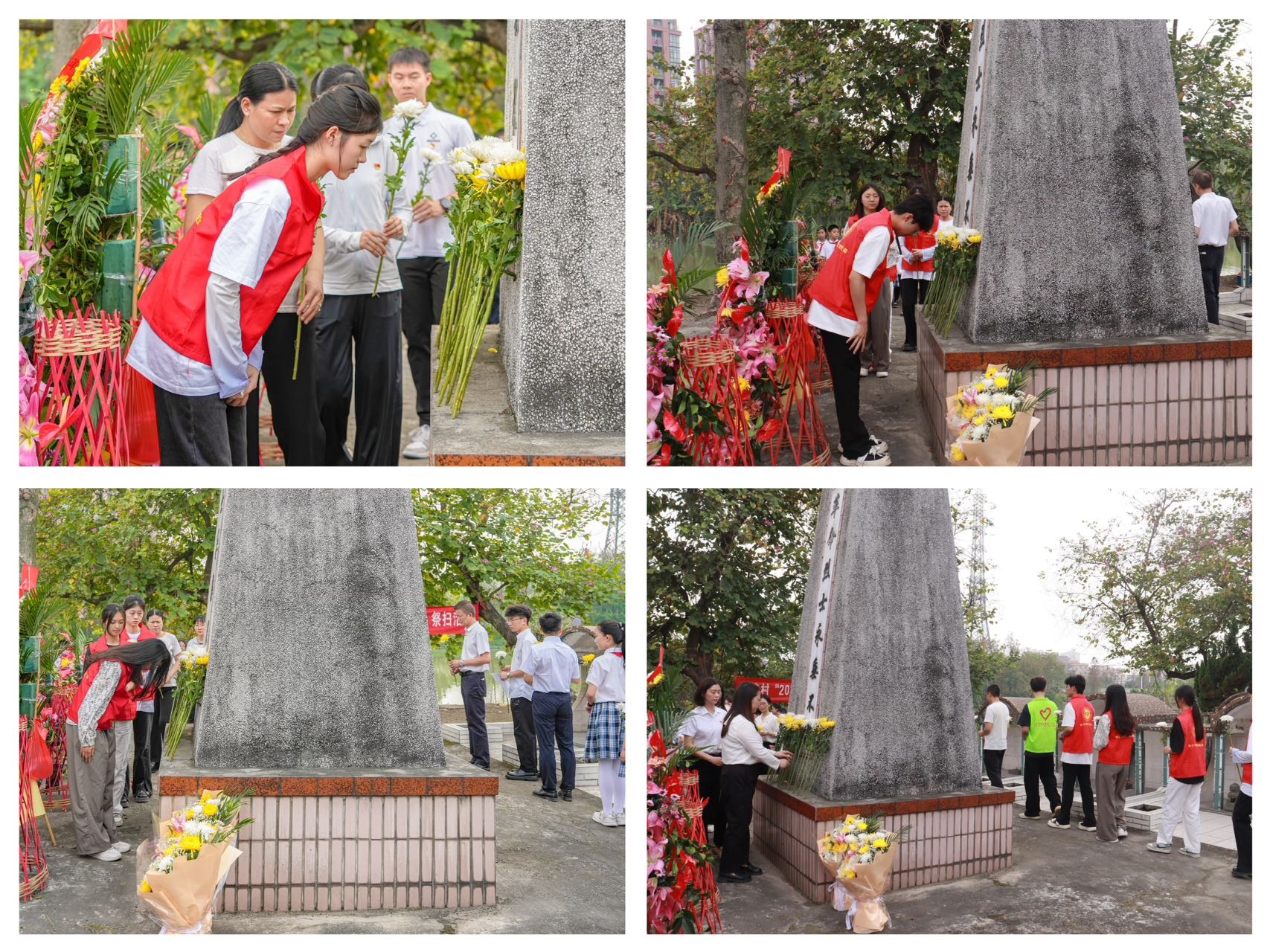 露珠闪烁春意浓,清明时节怀先烈。在庄严肃穆的“革命烈士永垂不朽”纪念碑前,全体同志整齐列队,肃立默哀,伴随着庄严的国歌声,表达对革命先烈的无限敬意与哀思。随后,在主持人的带领下,党员代表们手持鲜花,依次有序地走向纪念碑,深情地向革命烈士们敬献。会计学院学生第三党支部与大步村党委的党员同志们怀揣着对革命先烈崇高的敬意,积极投身于纪念广场、革命前辈墓园的清洁工作中,并敬献花圈缅怀革命烈士。