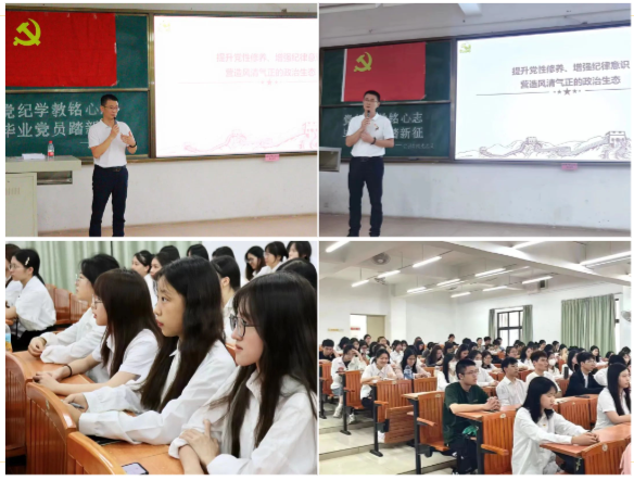会计学院学生第三党支部书记邓楚云老师对本次林源书记亲临授课表示由衷的感谢,他表示自今年4月以来,会计学院上下深学细悟习近平总书记关于全面加强党的纪律建设的重要论述,深入开展党纪学习教育,取得了实实在在的阶段性成效。而此次党纪学习教育专题党课,更是通过以案说德、以案说纪、以案说法、以案说责强化警示威慑,进一步落实党中央部署及要求,深入推动党纪学习教育走深走实,入脑入心。希望各位毕业生党员能够在新的起点上,继续发挥党员先锋模范作用,始终做到“知党恩、感党恩、听党话、跟党走”,以更坚定的理想信念和更饱满的奋斗热情开启人生新征程,奋力书写为中国式现代化挺膺担当的青春篇章。