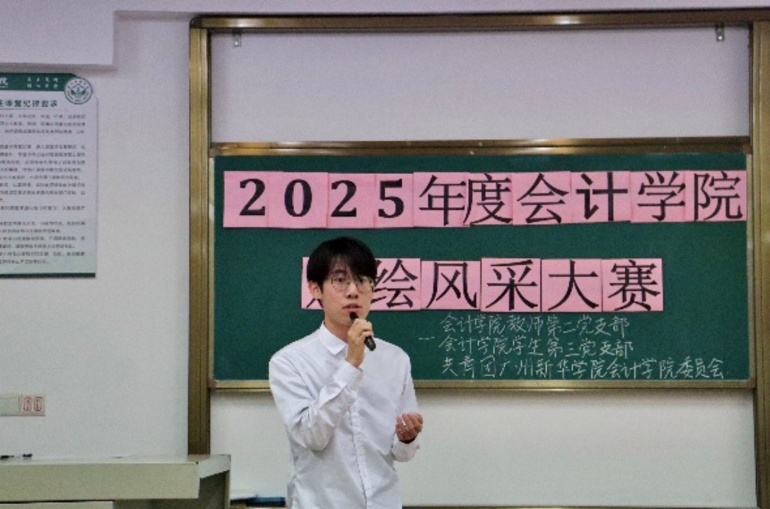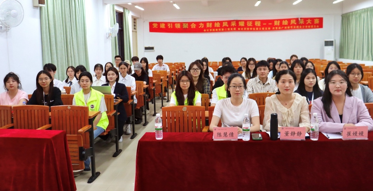 会计学院学生第三党支部坚持以习近平新时代中国特色社会主义思想为指导,全面贯彻党的二十大和二十届三中全会精神,落实立德树人根本任务,贯彻“三全育人”要求,持续强化会计学院学风建设,培育学生严谨认真、拼搏进取学习习惯,打造活跃浓厚的学术氛围,推动会计学院学生第三党支部“党建育人+专业学习”育人模块走深走实。2025年3月26日,会计学院学生第三党支部联合会计学院教师第二党支部、共青团广州新华学院会计学院委员会协同开展“党建引领聚合力,财绘风采耀征程”2025年度会计学院财绘风采大赛。