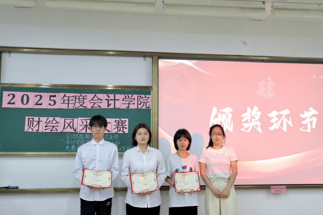 经过决赛的精彩对决,本次“党建引领聚合力,财绘风采耀征程”2025年度会计学院财绘风采大赛圆满落幕。在本次大赛中,钟雅雯同学凭借卓越表现荣获一等奖;刘欣怡同学、郑慧珊同学荣获二等奖;姚润琳、陈辉龙、杨子仪同学获得三等奖。本次大赛不仅充分展现同学们在财会知识梳理和记录方面的能力,也为同学们搭建相互学习、共同进步的交流平台。通过比赛,激励各位同学积极探索更高效的学习方法,营造积极进取的学习氛围。