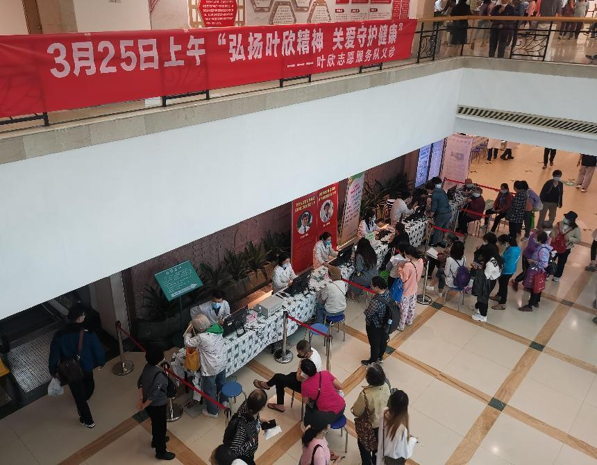 为传承弘扬叶欣精神,3月25日,广东省中医院叶欣志愿服务队在二沙岛医院开展义诊活动,以实际行动缅怀叶欣烈士。叶欣志愿服务队由急诊科、心血管科、脾胃病科、运动医学科、妇科、泌尿外科、药剂科、检验科组成,开展的项目有健康咨询、中医特色疗法体验、用药咨询、测血型、测血糖等。当天共服务患者200人次。