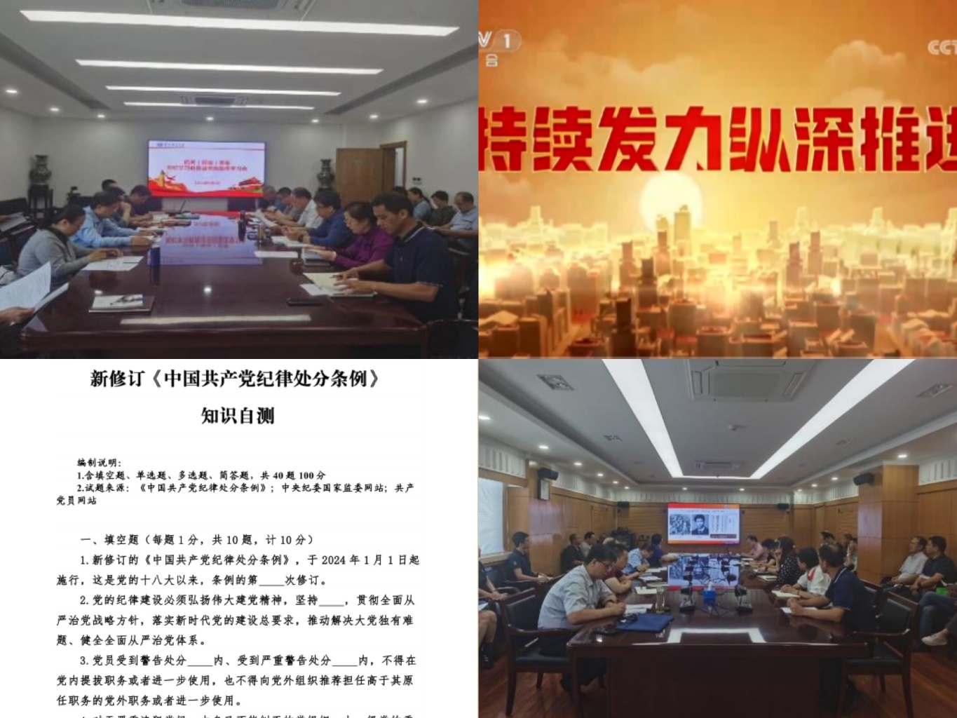 各支部积极利用多种形式开展党纪学习教育。如赴狼牙山爱国主义教育基地、阜平城南庄革命纪念馆、骆驼湾等红色教育基地开展主题党日活动,在实践活动中涵养忠诚干净担当的政治品格。以党支部为单位组织党员观看红色电影《征程之星火》,进一步坚定共产主义信念。结合1+1+1支部共建开展支部学习交流观摩活动,比学促学深化学习效果。同时,各支部还统筹开展师德师风专题学习、单位廉政风险点梳理等,将管党治党要求落实到各部门的具体工作之中。