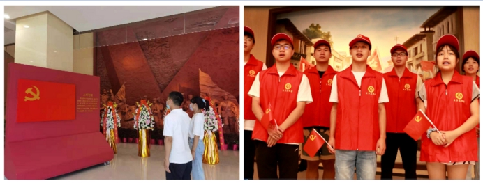 学习结束后,实践团党员在党旗前重温入党誓词,并带领全体成员在纪念馆内齐唱《没有共产党就没有新中国》。