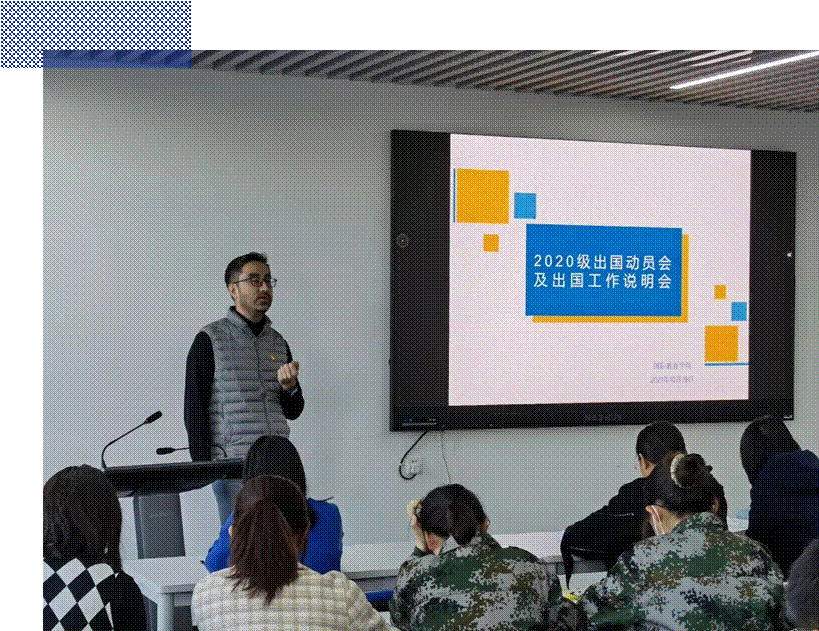 10 月19 日, 国际教育学院举办2020 级出国动员会及出国工作说明会。副院长赵子健, 中外合作办学项目事务部负责人王娟, 以及全体2020 级学生参加会议。