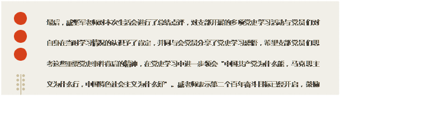 随后,支部党员依次发言,简要汇报了自己在党史学习中的收获与提高、差距和不足。大家经过一番诚挚的发言与交流,普遍表示自己主要通过相关书籍、新闻、影视及院内举办的活动学习党史及其他理论,经过院支部的积极呼吁和促进,大大提高了学习的热情,但大家也同时反映学习中不乏学习深度不足、毅力不够、难将理论与实际结合等问题,期待新老党员们在此次的生活会中汲取他人传授的经验,同时引以为鉴,更精进地学习党史。