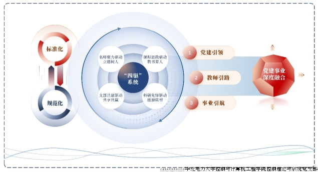 坚持以习近平新时代中国特色社会主义思想为指导,深入学习贯彻习近平总书记关于教育的重要论述,深入学习贯彻党的二十大精神,持续提升党支部标准化、规范化建设水平,全面构建支部共建驱动共享共赢、名师聚力驱动立德树人、课程思政驱动教书育人、科研先锋驱动能源转型的“四驱”系统,不断强化党建引领、教师引路、事业引航的“三引”功能,继续促进党建与事业实现高质量、特色化协同发展,把党支部建设成为制度完善、活动规范、作用突出、特色鲜明的“两化四驱三引一融合”样板党支部。