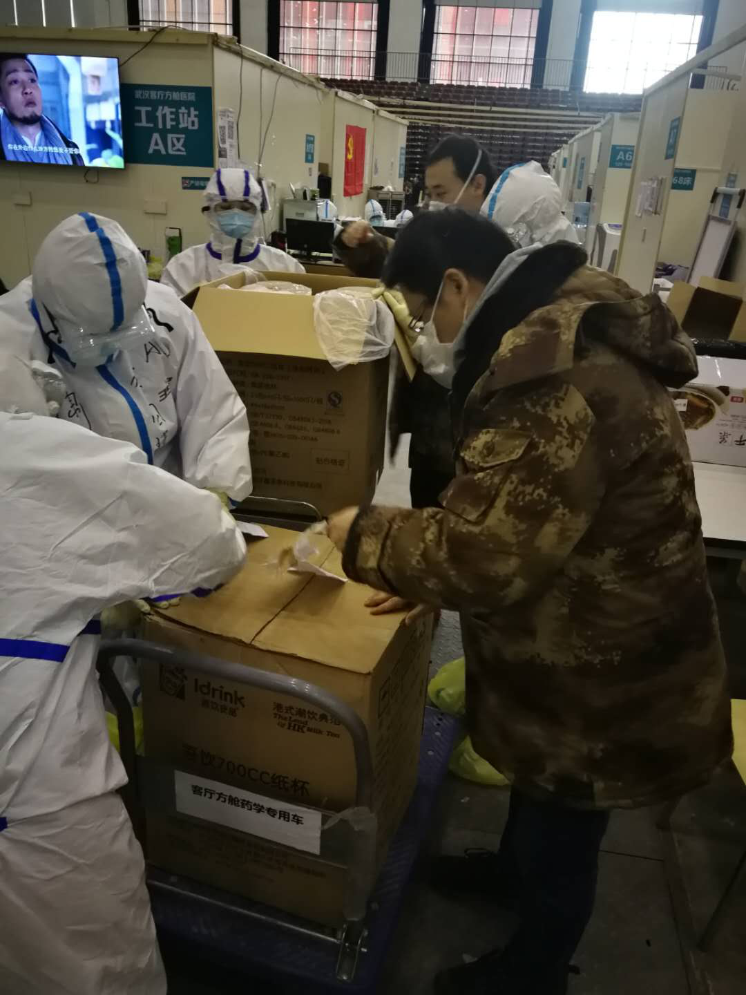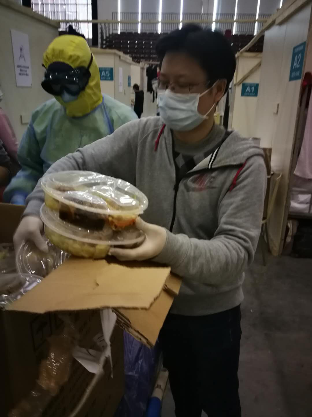 作为临时党支部的一员,黄信主动要求承担每天的送饭任务。他说,方舱里的医护人员每一班需要持续工作6小时,量体温、发药、送饭、做卫生、消毒忙个不停。为了减轻他们的负担,黄信所在的临时党支部成员都会主动承担其中部分非医疗性质的工作:分发餐食,询问病友生活需求,疏导情绪有波动的病友。党员志愿者的参与让方舱医院效率提高、井然有序。