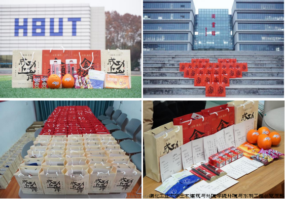 老师给学生们送上自己亲手书写的专属祝福明信片,并将寓意心想事“橙”、金“棒”题名、神来气“旺”、连中三元、蒸蒸日上等美好祝愿的暖心大礼包交到学生手中。这些精心挑选的礼物寓意着对考研学子们的鼓励和祝福,希望能够缓解他们的学习压力,增强他们的信心。