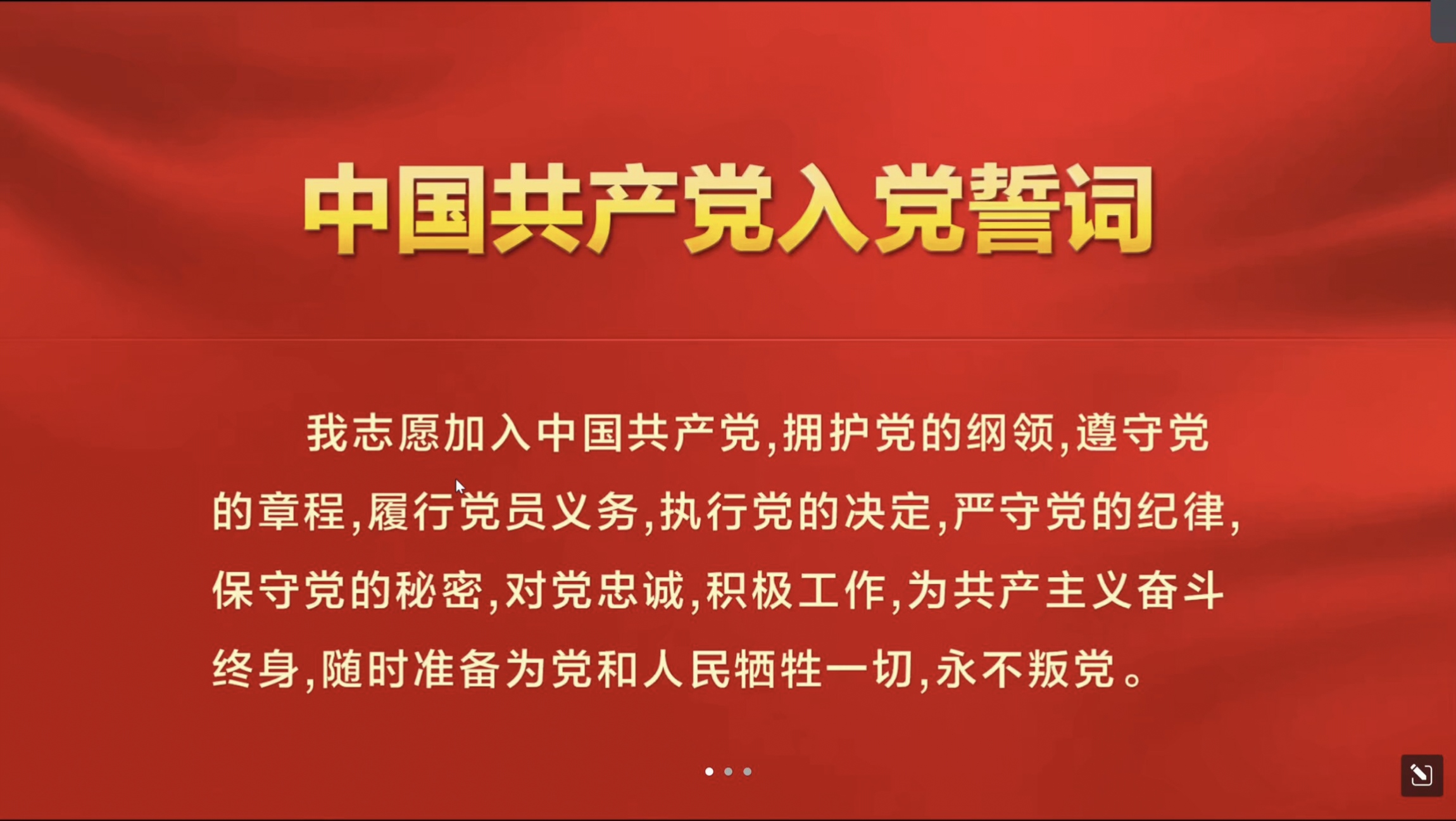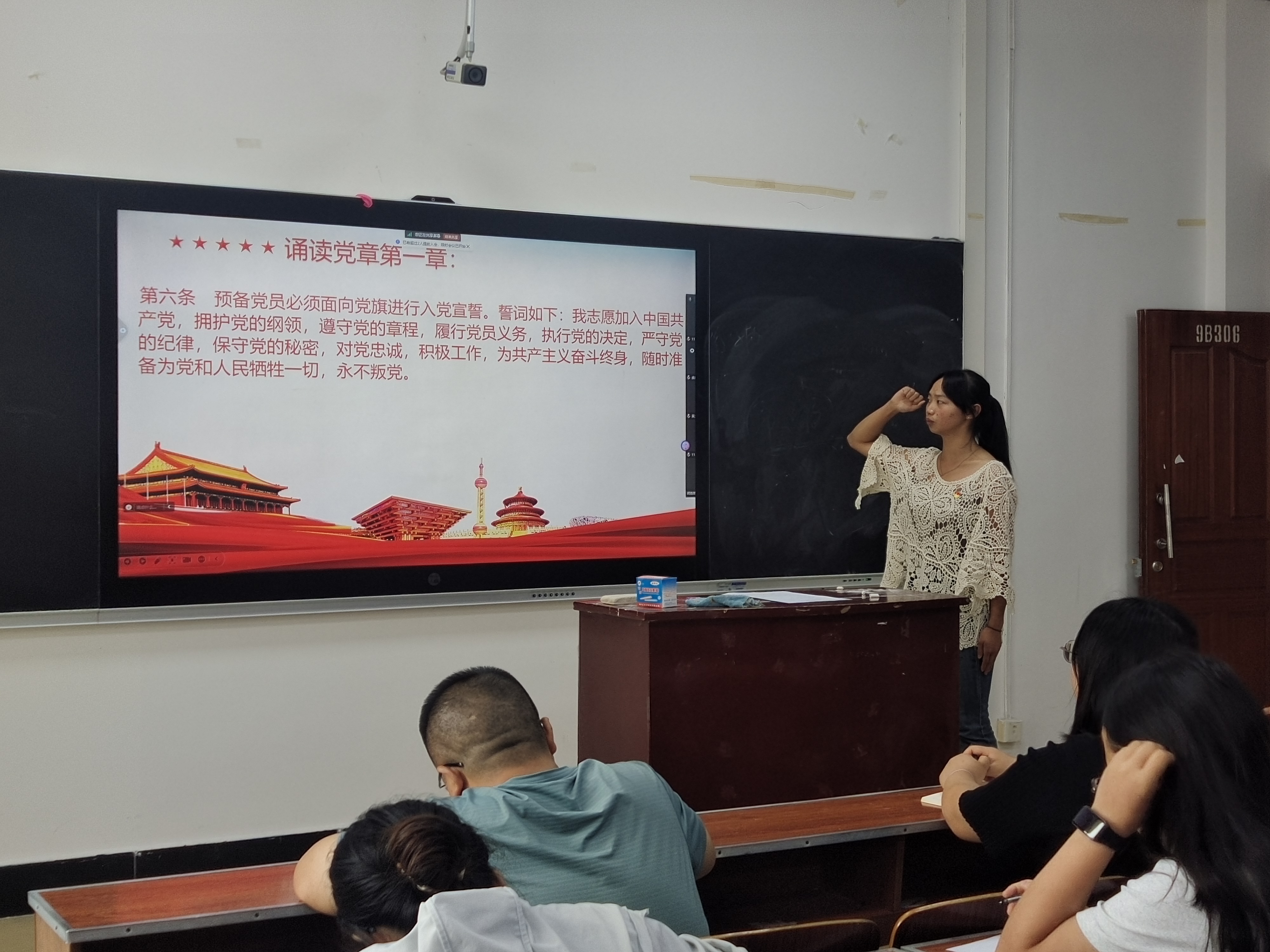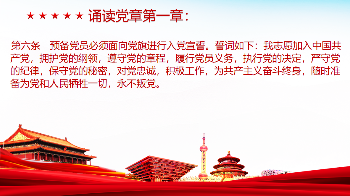 第三项:组织党员诵读党章,由第四党小组领学党章第一章;由第一党小组成员王海霞同志诵读。