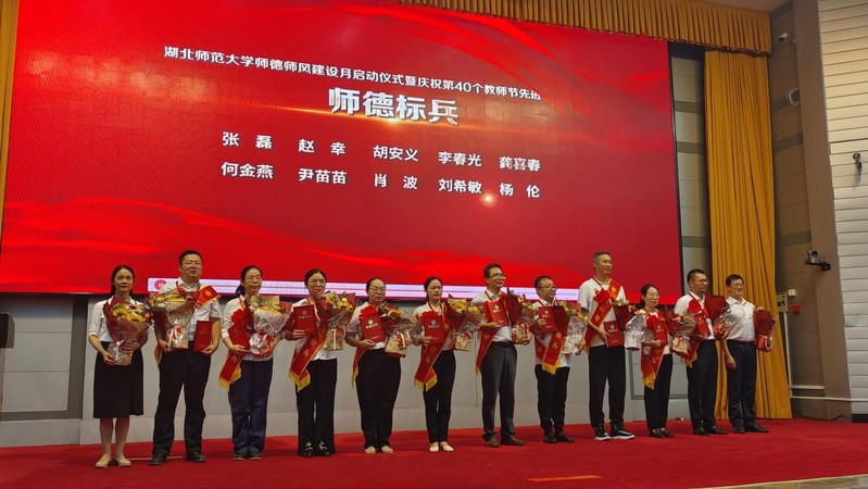2024年9月5日下午,学校召开了“湖北师范大学师德师风建设月启动仪式暨庆祝第40个教师节大会”,全体在校校领导,全校副处级以上领导干部,2024年度先进教师代表,新入职教师以及各学院师生代表等参加大会。马克思主义学院青年教师张磊博士荣获市级师德优秀教师、校级师德标兵荣誉,作为获奖教师代表发言,分享了自己的育人事迹。