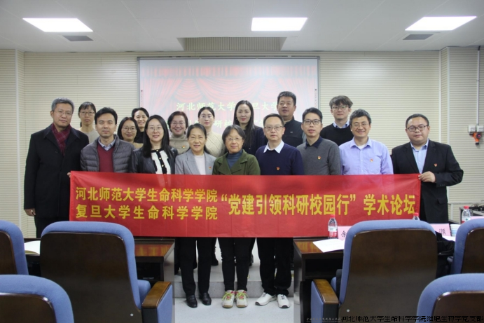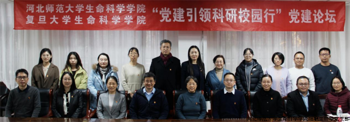 生命科学学院党委书记张晓红致辞欢迎,她表示两个学院党建引领科研交流是新尝试、新合作、新起点,希望以此为契机加强合作,共促党建联建,实现资源共享、师资互鉴、科研合作、学术交流的新局面。复旦大学生命科学学院党委副书记余文博表示,很高兴来到河北师范大学,来到革命圣地西柏坡学习,两个学院学科建设、科学研究交流广泛,加强党建交流,逐步深入交流合作共促两个学院高质量发展。