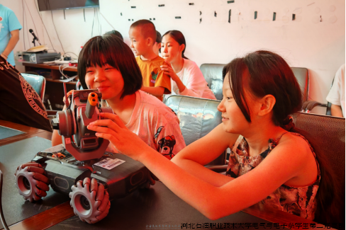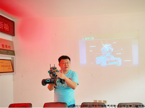 教育植入,科技助航。活动通过讲座和实践实现了乡村中小学生与人工智能技术的零距离互动。电系团总支书记刘畅老师和校友代表王爽分别为学生们科普了机器人、无人机相关知识,现场带同学们一起体验机器人和无人机的操作,学习人工智能、使用人工智能,让学生们在拥抱科技变化的同时,激发了学习的热情。