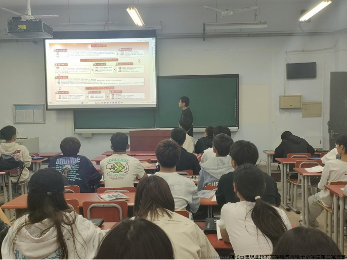 随后,党员蔡晓杰详细介绍了中国共产党发展党员的工作流程,包括申请入党、确定和培养教育入党积极分子、确定和考察发展对象、接收预备党员以及预备党员的教育考察和转正这五个关键步骤。此外,他还细致讲解了党的基本知识以及党对青年工作的领导和要求,重点传授了如何撰写入党申请书和思想汇报。他鼓励学弟学妹们在今后的学习生活中严格自律,不断提升综合素养,以实际行动践行党的路线方针,积极向党组织靠拢,努力早日成为一名合格的中共党员。