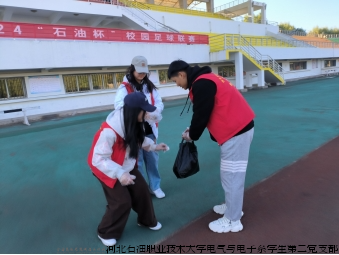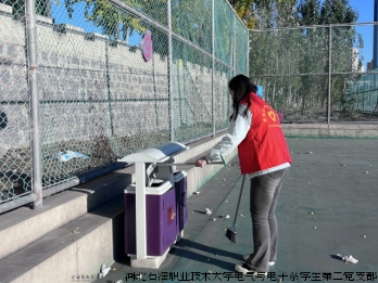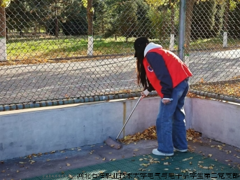 志愿者们热情高涨,干劲十足。他们手持扫帚,认真清扫着每一处地面,将落叶进行清理;他们拿着垃圾袋,穿梭在操场、篮球场、羽毛球场和网球场之间,仔细捡拾着垃圾杂物;他们分工合作,默契配合,不放过任何一个卫生死角。他们用自己的实际行动诠释着党员的责任与担当,为校园环境的美化贡献自己的力量。