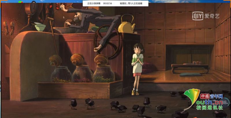 图为志愿者与学生一同观影 中国青年网通讯员 李璐 摄