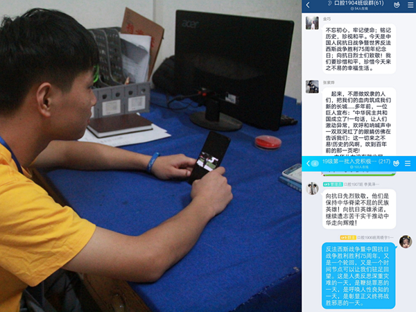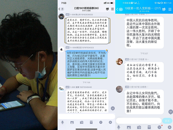 其他学生党员也纷纷在学生党支部群发表自己的感想和体会,表达对革命先烈的赞扬和对祖国的热爱。