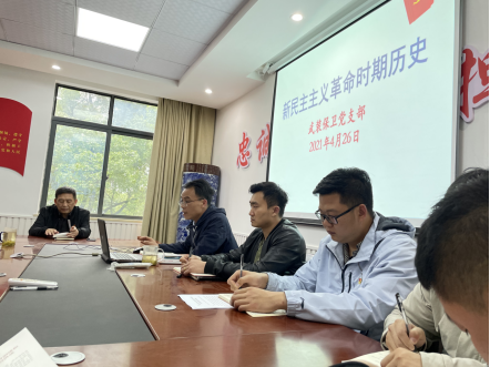 4月26日下午,华东交通大学机关党委武装保卫党支部召开党史学习教育“新民主主义革命时期历史”专题学习研讨会,会议由党支部书记王迪旻主持,全体支部党员参加了学习与交流。
