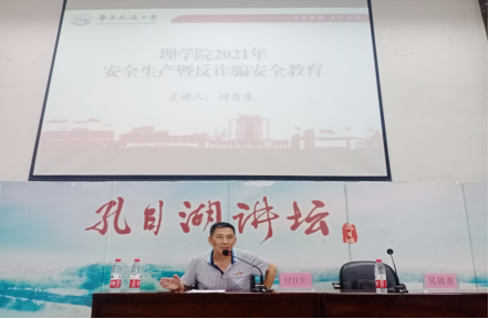 付自生精彩的宣讲,得到了台下师生一致好评,台上台下深度的互动交流,使校园安全生产观入脑入心,党委书记吴效葵就本学院安全生产工作进行了表态性发言,理学院2021年安全生产暨防诈骗安全教育宣讲达到了预期效果。