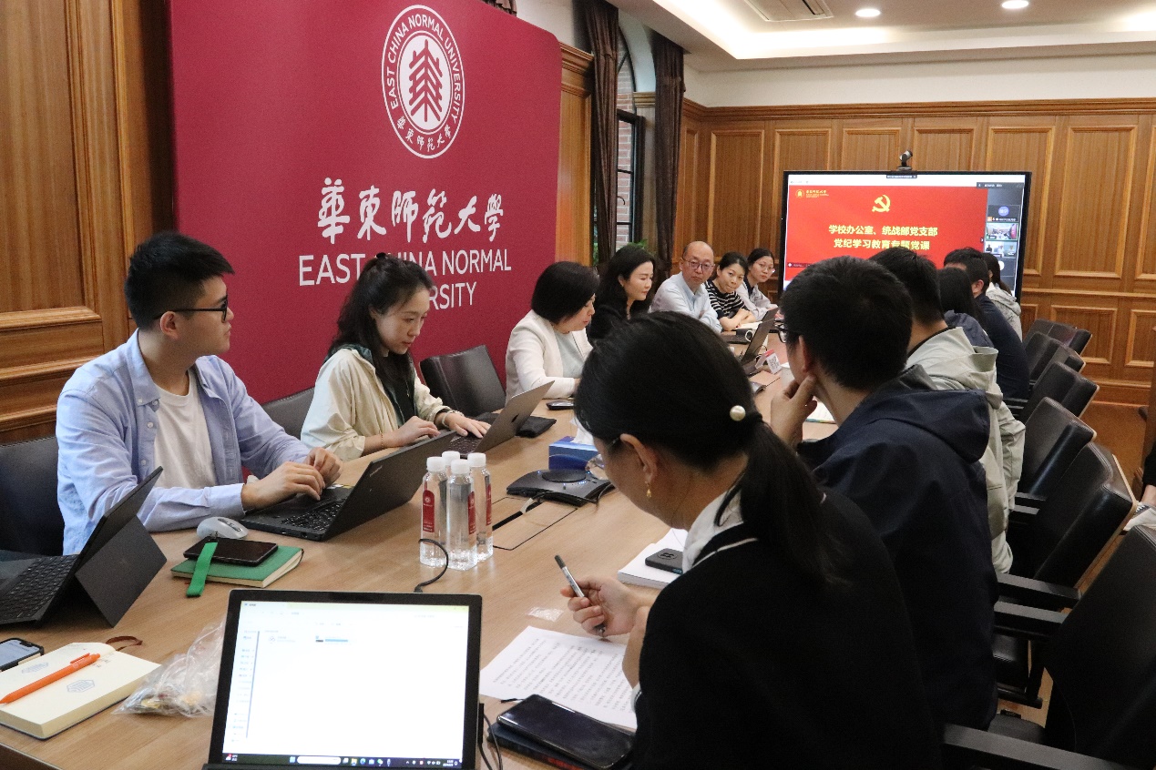 2024年6月6日下午,华东师范大学学校办公室、统战部党支部举办党纪学习教育专题辅导报告会,中共上海市委党校公共管理教研部副教授徐瑜璐应邀以《手握“戒尺” 行有所止——深刻感悟全党开展党纪学习教育的时代意义》为题作辅导报告。校党委常委、统战部部长、学校办公室主任,学校办公室、统战部党支部书记张惠虹主持报告会。