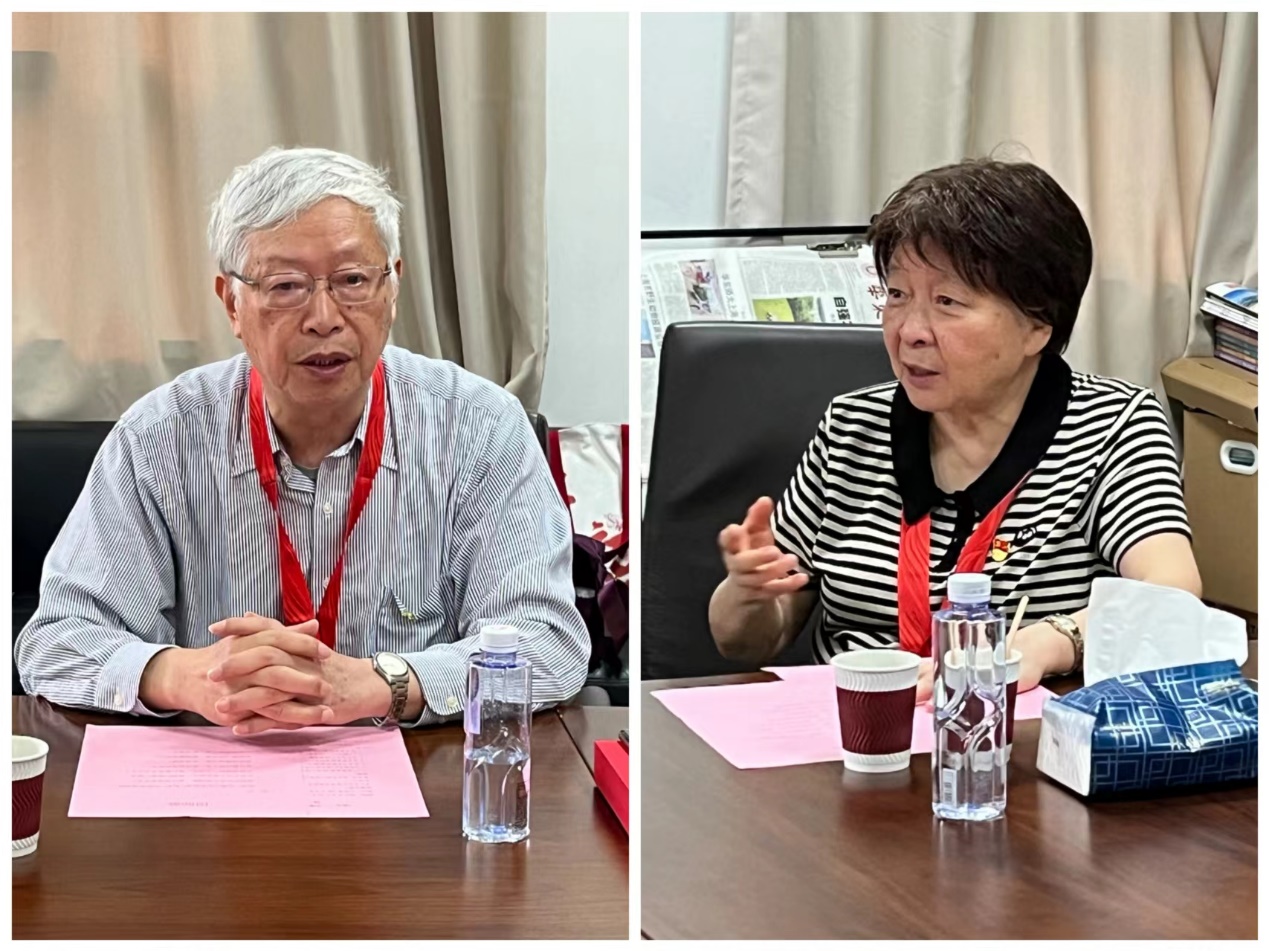 二位老党员纪念章佩戴在胸前,围绕“共话50年峥嵘岁月,回顾75年强国之路”这一主题,抒发了心中万分感慨。