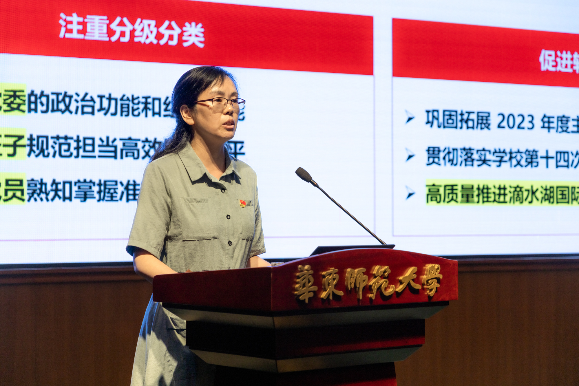 在交流研讨环节,校党委常委、组织部部长朱军文从时代之需、对象之变、党务干部队伍建设等方面着手,提出了学校党建研究的新导向。校纪委副书记俞黎阳提出要在深化、内化、转化等方面下功夫,把党纪学习教育融入日常、抓在经常。软件学院党委书记杨艳琴介绍了以党纪学习教育形成合力,提升攻坚克难能力、推动事业发展的鲜活案例。教育学部党委书记闫露分享了通过强化机制保障、队伍建设、资源拓展抓好党员教育实践,赋能高质量发展的经验。