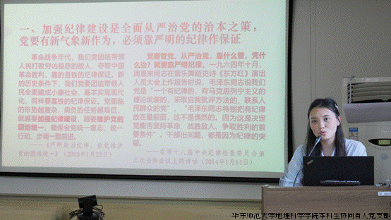 在台风所大会议室,在地理科学学院校友、台风所助理研究员陆逸的带领下,两支部党员共同学习了《习近平总书记关于加强纪律建设重要论述》。加强纪律建设是全面从严治党的治本之策,真正把纪律规矩转化为政治自觉、思想自觉、行动自觉,对于个人和集体的发展都具有十分重要的意义。
