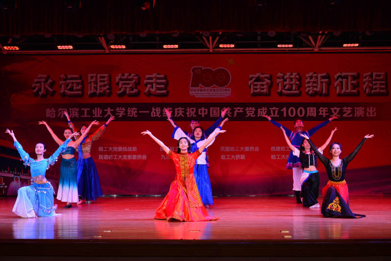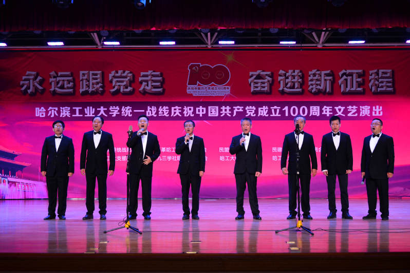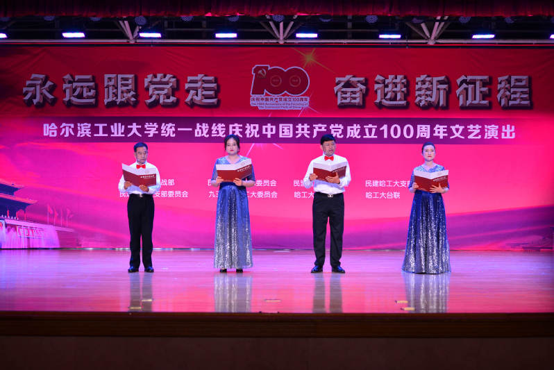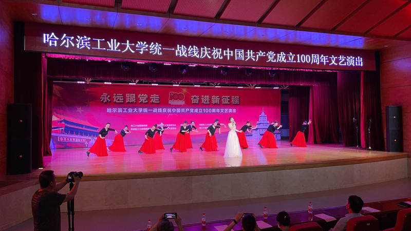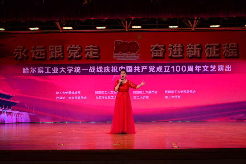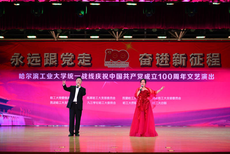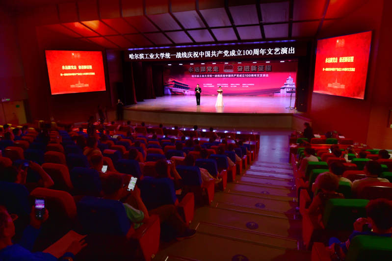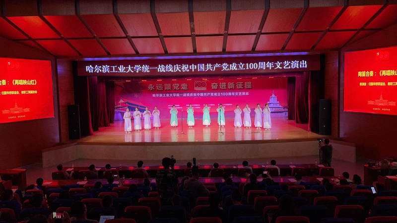 哈工大全媒体(杨允/文 刘志强/图)为热烈庆祝中国共产党成立100周年,热情歌颂中国共产党的百年辉煌和伟大成就,充分展现统一战线成员在党的领导下携手同心、共创伟业的良好风貌,进一步增强统一战线成员听党话、跟党走、与党同心奋斗的思想自觉、政治自觉和行动自觉,大力唱响共产党好、社会主义好、改革开放好、伟大祖国好、各族人民好的时代主旋律,6月16日下午,“永远跟党走 奋进新征程”哈工大统一战线庆祝中国共产党成立100周年文艺演出在活动中心301举行。