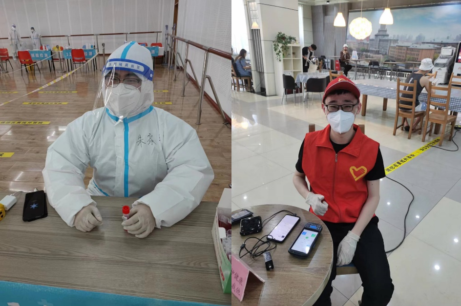 博士研究生刘峥同学说:“很高兴能够为核酸检测工作贡献自己的一份力量,同时也体会到了医护人员的辛苦,自己只做了四个小时的工作就已经感到疲惫,但是医护人员要持续工作,因此要向医护人员致以最崇高的敬意。”