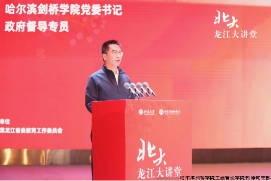 在“北大龙江大讲堂”启动仪式上,黑龙江省委教育工委副书记王震致辞时表示,“北大龙江大讲堂”的正式启动,是学习贯彻习近平总书记视察龙江期间重要讲话重要指示精神的具体行动,也是深化我省与北京大学战略合作、携手推动教育科技人才融合发展的生动实践,更是哈尔滨剑桥学院与北京大学长期、深度结对共建形成的丰硕成果。省委教育工委将高度重视并持续办好“北大龙江大讲堂”,让思想在这里碰撞,让创新在这里萌芽,让人才从这里成长,把大讲堂打造成省校战略合作的典范与品牌。同时,也将立足教育职能做好各项工作,加快省校战略合作在教育系统落地见效,为北大各类人才、科研团队和创新型企业在龙江发展做好服务保障,画出校地、校企、校校合作的“最大同心圆”。