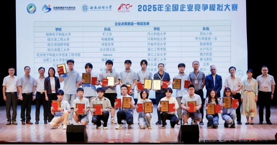 5月18日,由中国管理现代化研究会、高等学校国家级实验教学示范中心联席会经管学科组指导,中国管理现代化研究会决策模拟专业委员会主办,西南财经大学承办的2025年全国企业竞争模拟大赛总决赛在西南财经大学落下帷幕。本届大赛因其高规格的组织形式、创新的实践教育模式及激烈的竞争水平,吸引了新华社等主流媒体的关注,并对赛事成果及优秀团队进行了专题报道。
