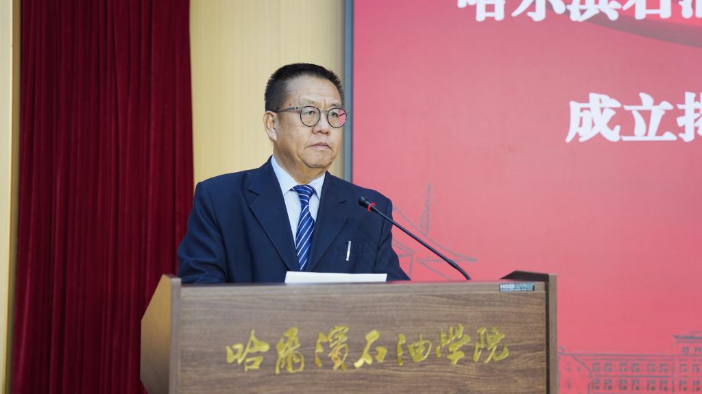 林立民书记在讲话中指出,铁人精神象征着不畏艰难、拼搏进取的精神风貌。学校自建校以来,始终秉持“承大庆精神立德,以铁人榜样树人”的育人理念,始终将铁人精神作为重要的教育资源,通过各种形式的活动和课程,让学生深刻领悟铁人精神的精髓和实质。铁人精神与文化研究中心的成立,为我们提供一个更加系统、深入的研究平台,让我们能够更好地传承和弘扬这一宝贵的精神财富。传承和弘扬铁人精神,不仅仅是一种历史责任,更是一种时代担当。学校要发扬以铁人为核心的哈油精神,这就是为党育人、为国植贤的担当精神,敢为人先、特色办学的创新精神,倾情教育、心系哈油的敬业精神,淡泊名利、无私忘我的奉献精神。希望全体师生以此为契机,紧扣时代发展需求,担负新的文化使命,汇聚研究力量,加强协同创新,做有组织科研,出高质量成果,深入开展铁人精神为代表的红色文化研究、阐释、弘扬、传播,更加深入地学习和理解铁人精神,将其内化于心、外化于行,为实现个人价值和社会价值而努力奋斗,为学校高质量发展贡献智慧和力量。