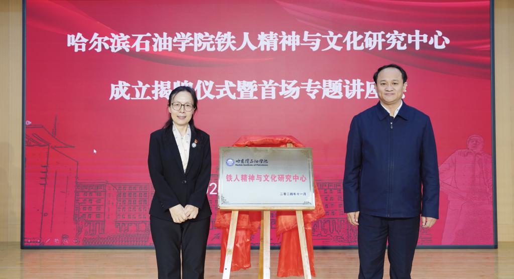 2024年11月11日,哈尔滨石油学院铁人精神与文化研究中心成立揭牌仪式暨首场专题讲座会举行。学校党委书记林立民,校长王义宁,党委副书记、纪委书记刘铎,副校长冯研,副校长康平军,党委副书记宁晶,各二级学院党总支书记、相关部门负责人、马克思主义学院全体教师、全体专兼职研究人员及部分学生代表参加会议。本次会议由研究中心副主任、马克思主义学院院长吴卫东主持。