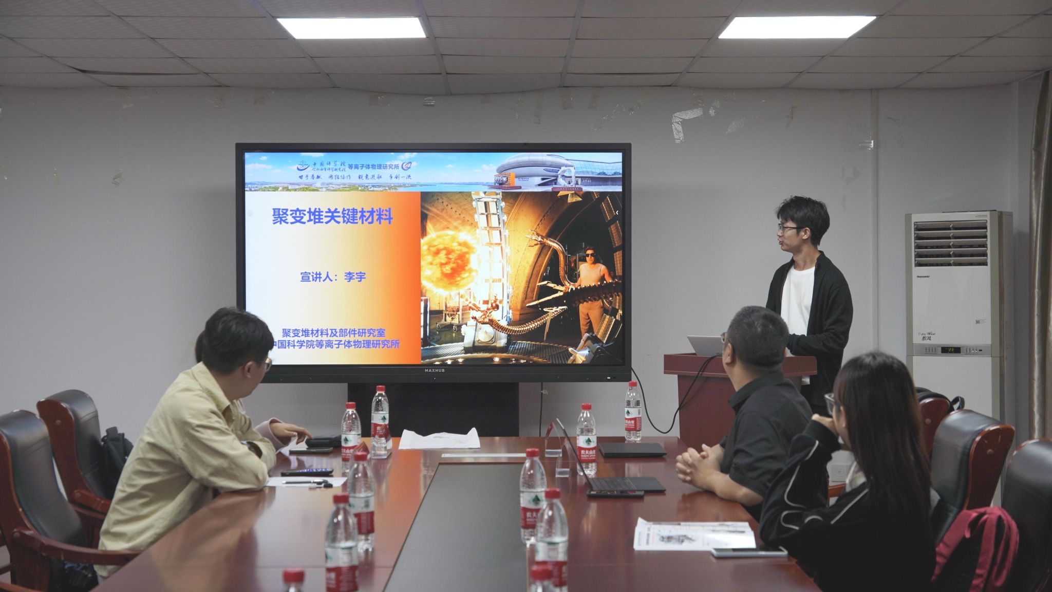 本次活动邀请到中国科学院等离子体物理研究所聚变堆材料及部件研究室师生党员主讲。研究所副研究员李宇以“聚变堆关键材料”为主题,介绍了核聚变能源的发展前景、聚变堆材料研究的重要性和挑战性。他围绕着研究所的历史沿革、科研实力、国际影响力等方面进行了详尽阐述,并特别强调了该所在推动我国乃至全球核聚变技术进步方面所做出的贡献。