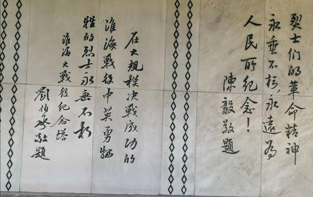 纪念塔旁边是一条镌刻着31006名淮海战役烈士英名的英烈纪念长廊。在淮海战役中,3万余名中华民族儿女在此次战争中献出了宝贵生命,他们之中有身经百战、屡建战功的军事指挥员;有视死如归、冲锋陷阵的士兵战士;有团结一心、不畏艰险的后勤人员。这些英雄为中华民族的解放事业英勇献身,他们的光辉业绩永载史册!
