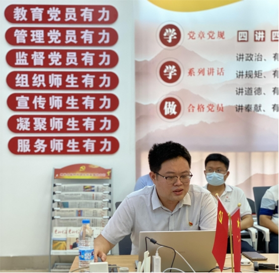 2022年6月17日,在七一建党节来临之际,纳米功能材料研究所直属党支部、校产管理处党支部和附属医院后勤基建党支部,以线上和线下结合方式联合举行“弘扬两弹一星精神 赓续党的精神血脉”主题党日活动,三个党支部党员同志参加党日活动,校产管理处党支部书记于春霞主持。