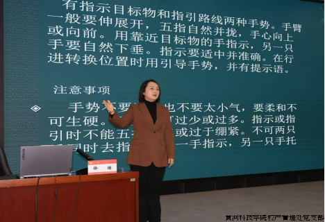 11月15日,校产管理处党支部在黄河科技学院第一报告厅组织开展了“声入人心 讲出精彩”主题党日活动。活动特邀河南省博物院讲解科科长徐楠作专题培训,校产管理处党支部全体党员和大学生科普志愿者共同学习讲解艺术的精髓,校产管理处党支部书记于春霞主持活动。
