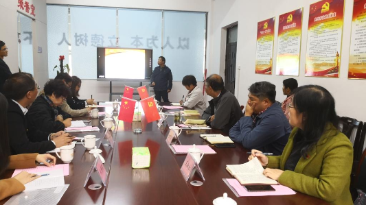2019年11月1日下午,河南城建学院外国语学院党总支一行六人在党总支书记袁晓的带领下来到土木与交通工程学院教工道桥党支部进行党建工作考察交流。土木与交通工程学院党总支书记赵杰、院长王付全以及教工道桥党支部支委、教工道桥党支部党员教师与袁书记一行在道桥党支部活动室共同开展交流活动。