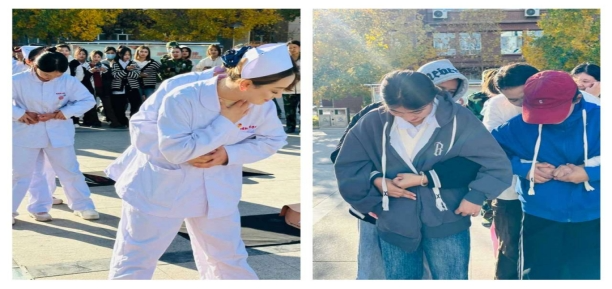 医护系党支部以服务学生为中心,针对学院学生生命安全健康知识普及率低的问题,开展以生命安全健康教育为主题的一系列活动,如新生生命科普教育;防艾项目主题活动;联合哈密市中心医院和哈密第二人民医院开展学生急救知识普及;以及本次新生军训急救教育活动,为学院学生生命安全和身体健康保驾护航。医护系党支部将持续深入学习贯彻习近平新时代中国特色社会主义思想,聚焦立德树人根本任务,强化思想引领、精准服务,为学院高质量发展不断努力。