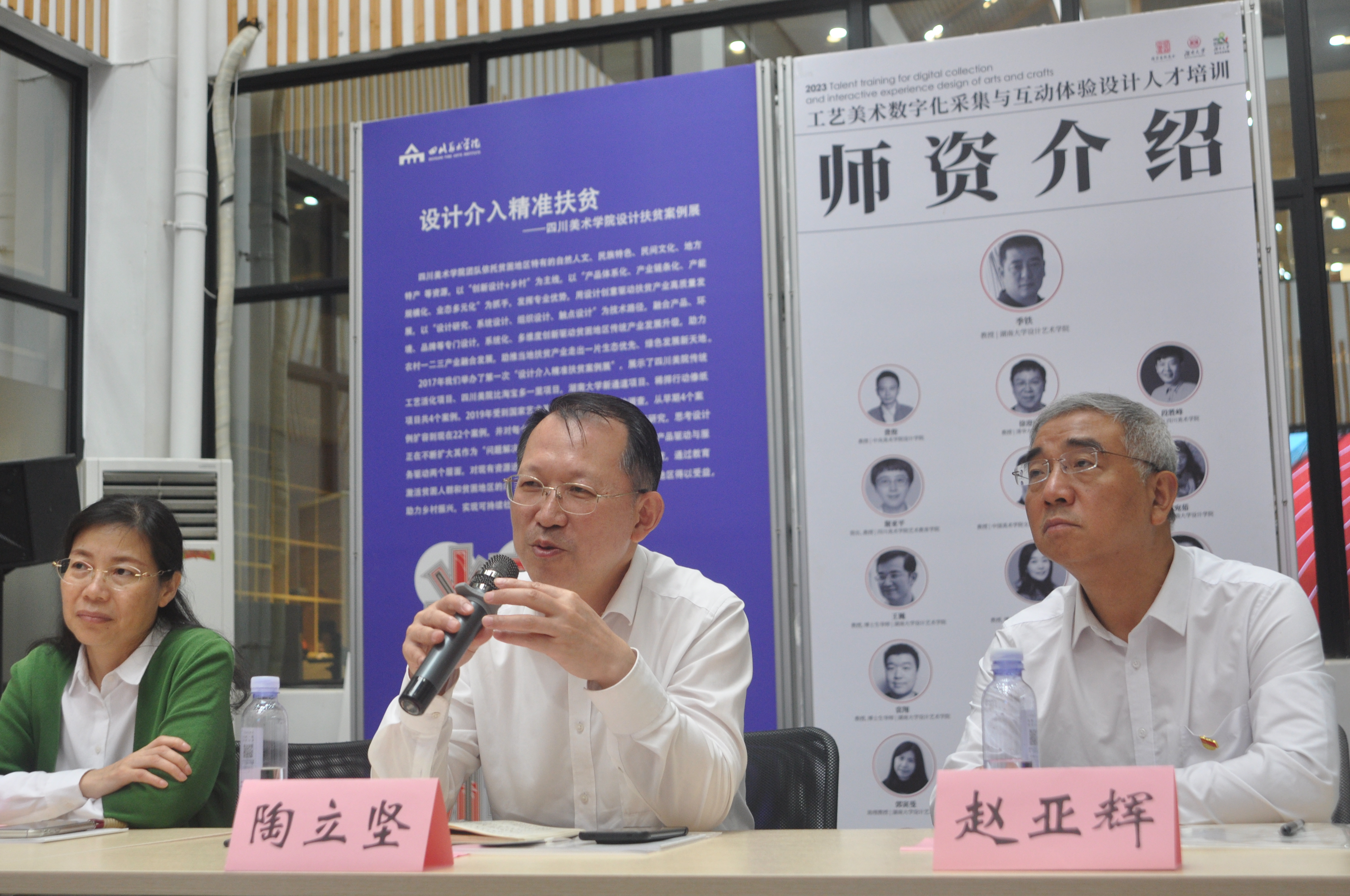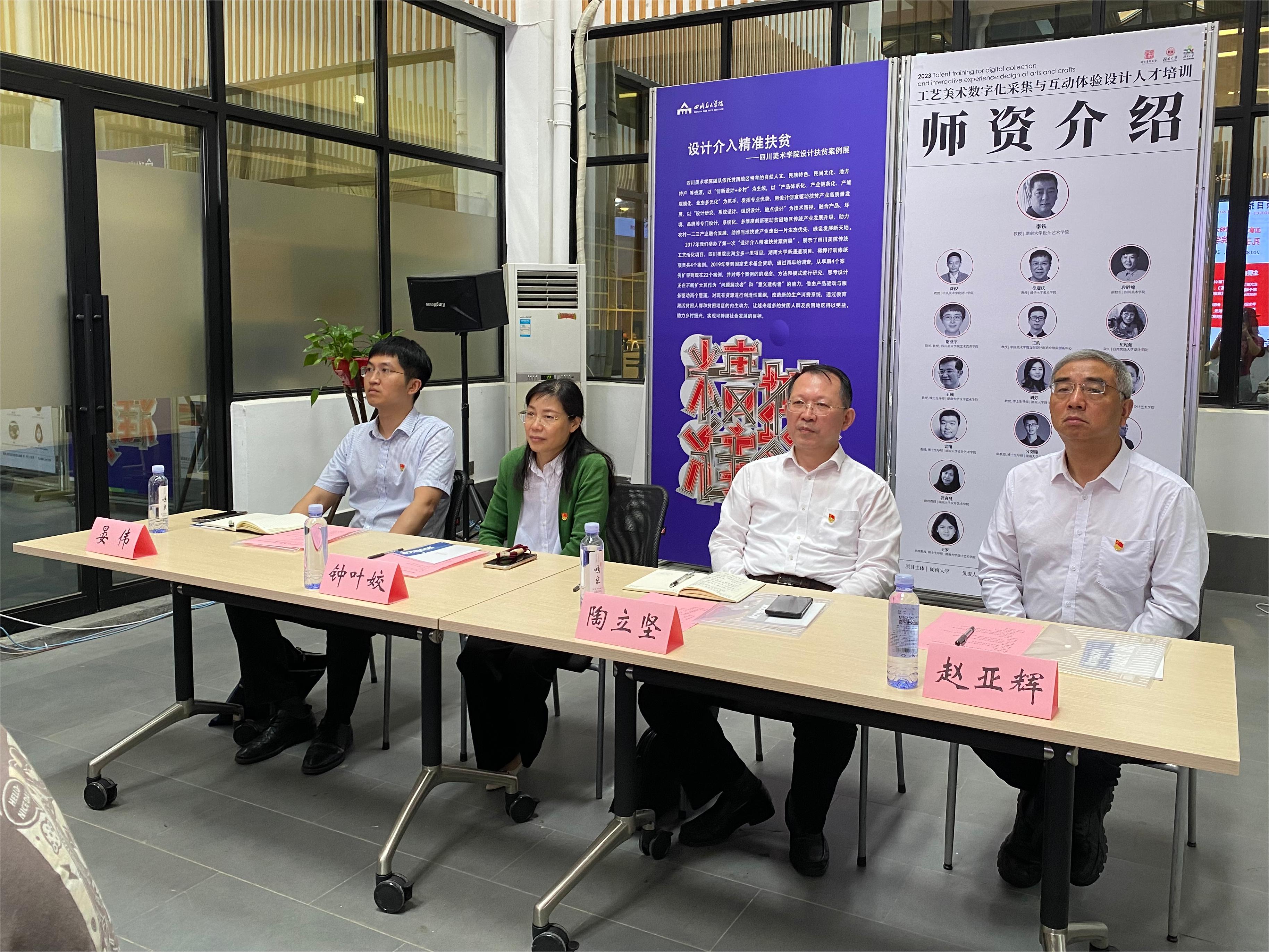 近日,湖南大学设计艺术学院博士生党支部在数字文化创意与智能设计技术文化和旅游部重点实验室开展“设计”赋能乡村非遗大美育主题党日活动。教育部直属高校党建工作联络员、中南大学原党委常务副书记陶立坚,湖南大学党校常务副校长兼党委组织部副部长钟叶姣老师、设计艺术学院党委书记赵亚辉等老师以及全体博士生党员参加活动。