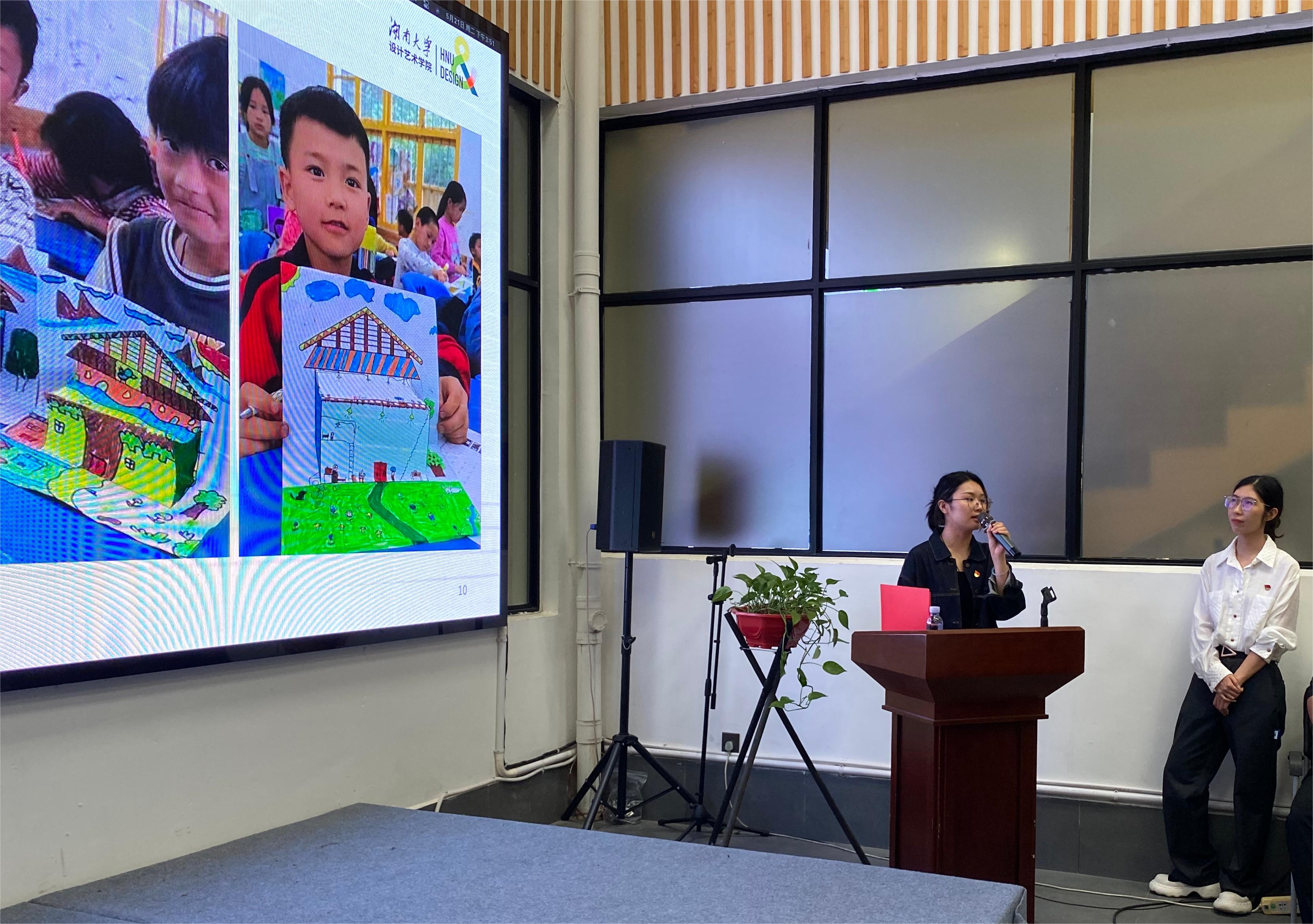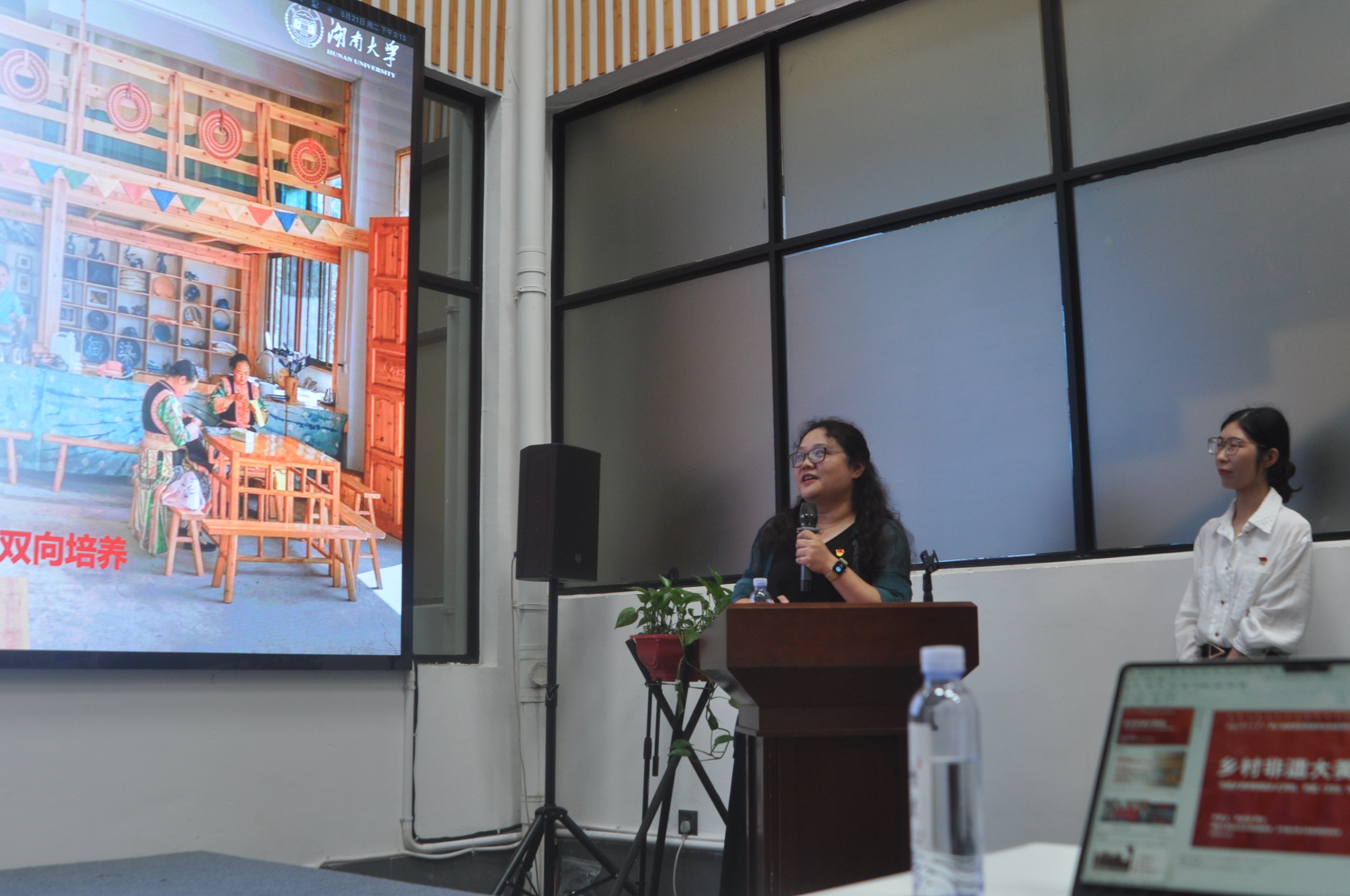 支部党员代表闵晓蕾博士详细阐述了乡村文化与生态融合发展的重要性,并分享了非遗乡村社区与文化生态、智慧农业与生态文旅融合的实践案例。她介绍道通过设计驱动,能够有效实现文化与生态资源的转化与融合发展。支部党员代表上官文琪介绍了“花瑶花”乡村儿童美育实践项目,该项目以乡土文化为核心,出版了多个系列儿童绘本,并打造了线上综合教学平台,为乡村儿童提供了丰富多样的美育资源。