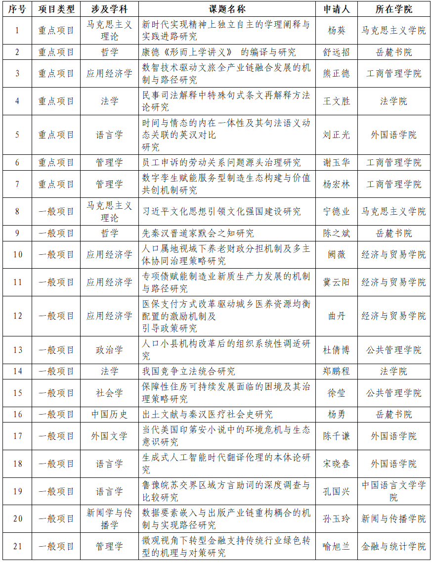 湖南大学2025年国家社科基金年度项目立项公布名单。
