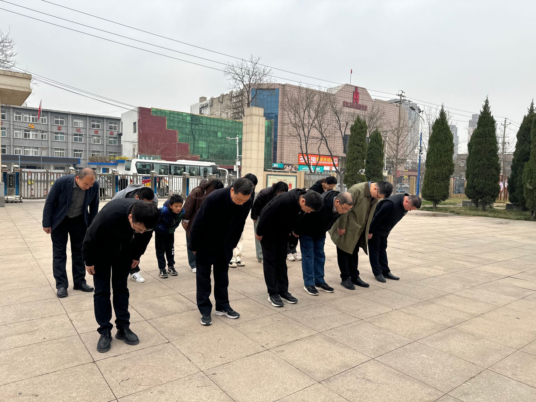 烈士陵园内苍松翠柏,庄严肃穆,纪念碑巍然屹立在正中央,全体人员排成整齐的队列在纪念碑前肃立缅怀,瞻仰烈士纪念碑,向革命烈士三鞠躬并敬献鲜花,表达了对革命先烈深切的敬仰。