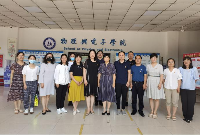 2022年7月7日上午,外语学院党委书记肖艳、副书记杨飞云及各支部书记一行12人来我院调研全国样板支部申报及建设情况。学院院长、党委副书记白莹、党委副书记刘寒冰、大学物理教工党支部书记康缈、组织委员李若平、学院党委办公室主任吴坤参加调研座谈会。
