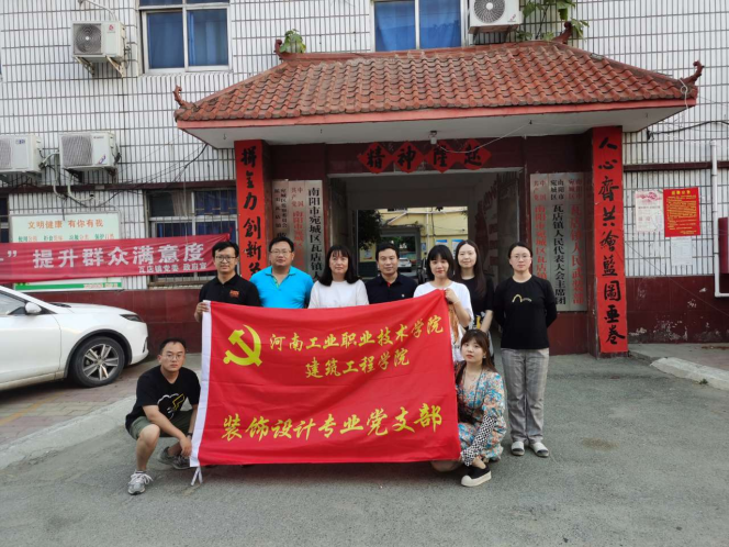 为更好发挥国家样板党支部的党建引领作用,进一步推进乡村振兴工作,装饰设计专业国家样板党支部与南阳市宛城区部分乡村党支部对接交流,党建引领,助力乡村振兴工作。6月21日,建筑工程学院院长范国辉、装饰设计专业党支部书记王玉卓、乡村规划中心骨干教师韩煜、郭晨、王晓茹、董世豪、杜楠、牛蔓丽、姚源渊等,对接宛城区瓦店镇的刘营、来庄、红泥湾镇刘寺等乡村党支部,以党建引领为抓手,实地了解各个党支部在抓党建促发展方面的难题,为各个党支部推进乡村振兴出谋划策。宛城区委、区政府与黄台岗、瓦店镇、红泥湾镇等乡镇工作人员陪同参加了对接工作。