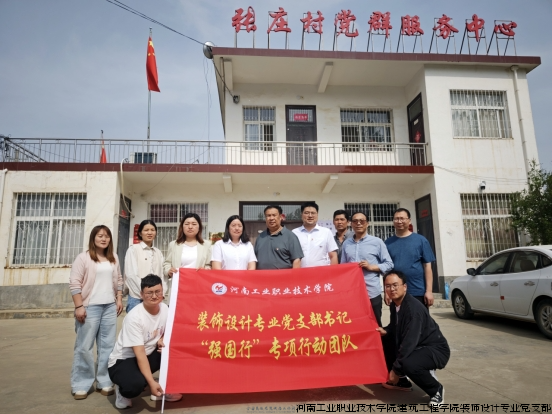 4月22日,建筑工程学院装饰设计专业党支部王玉卓、付蕊、董淼、符强、董世豪和学院教师马同芳等前往方城县杨集镇张庄村,开展了一场以“党建联建筑同心,设计赋能焕焕新颜”为主题的“强国行”专项行动。此次行动旨在通过党建引领,促进党建经验交流,推动张庄村党群服务中心指示牌设计、景观设计和乡村文化墙绘制工作,推进张庄村文化整体策划设计,提升张庄村村容村貌,为张庄村的乡村振兴注入新的活力。