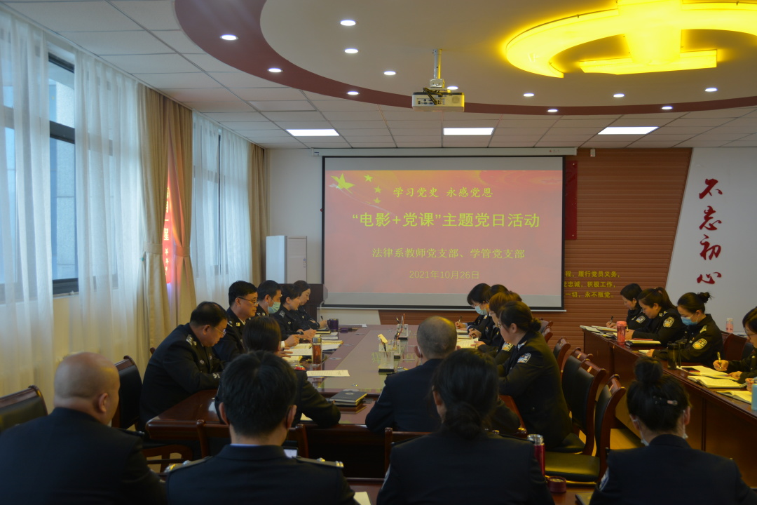 为进一步深化党史学习教育,营造学习党史的浓厚氛围,2021年10月26日下午,法律系教师党支部、学管党支部在党员之家活动室举行了“学习党史 永感党恩”电影+党课主题党日活动。活动由法律系主任李长忠主持,全体教师参加。