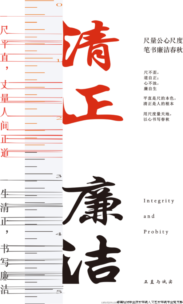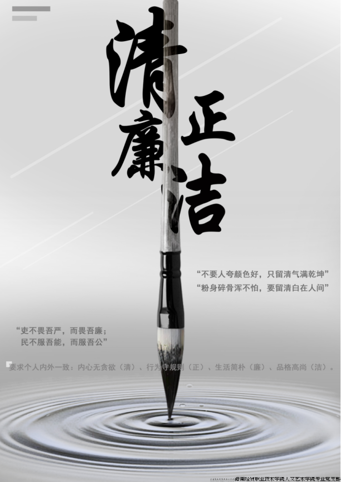 为深入推进清廉校园建设,厚植廉洁文化根基,2025年5月至6月,海南省第三批高校"双带头人"教师党支部书记工作室(海经贸人艺匠心工作室)在人文艺术学院党总支指导下,精心策划并成功举办"清廉人文"主题海报征集活动。经专业评审团严格评选,产生了一等奖2项、二等奖5项、三等奖7项。