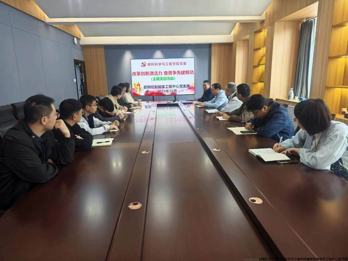 2024年10月22日,磨损控制国家工程中心党支部举行“改革创新激活力 奋勇争先建新功” 主题党日活动,深入学习贯彻党的二十届三中全会精神。活动由党支部书记周玉成主持。