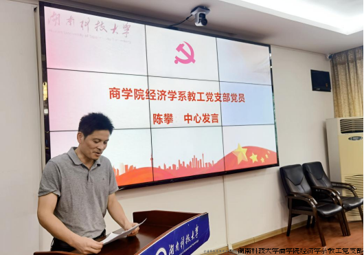 随后,交流研讨环节,支部党员陈攀就扎实开展党纪学习教育作中心发言,他认为高校教师肩负着为党育人、为国育才的历史使命,应自觉将党纪铭于心、将廉洁践于行,以“忠诚、干净、担当”的政治品格当好新时代“大先生”。